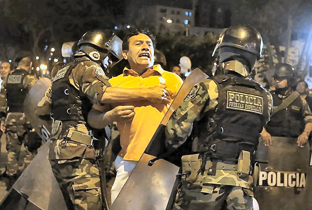 Protesters clash with police near Centerio hospital after Peruvian