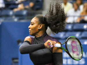 Serena Williams of the USA hits to Vania King of USA (not pictured)