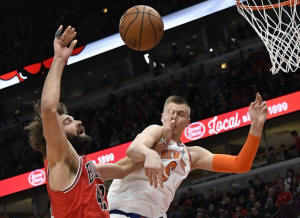 Bulls center Robin Lopez (42) and New York Knicks forward Kristaps
