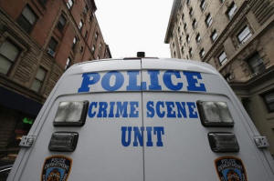A New York City Police Crime Scene Unit vehicle stands on the street