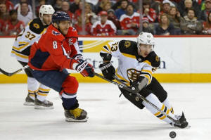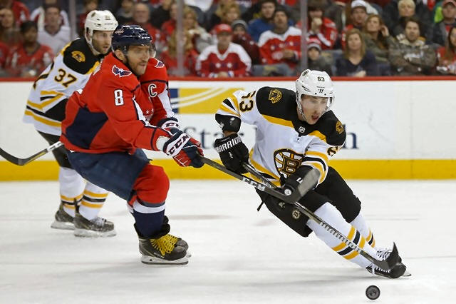 Boston Bruins left wing Brad Marchand (63) skates with the puck as