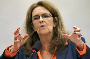 Gracas Silva Foster reacts during a session of a parliamentary