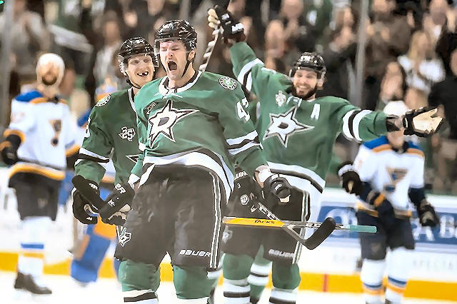 the American Airlines Center. The Stars defeat the Blues 4-2.