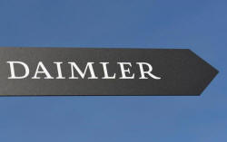 Daimler AG sign is pictured at the IAA truck show in Hanover,