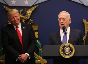 Mattis (R) after a swearing-in ceremony for Mattis at the Pentagon