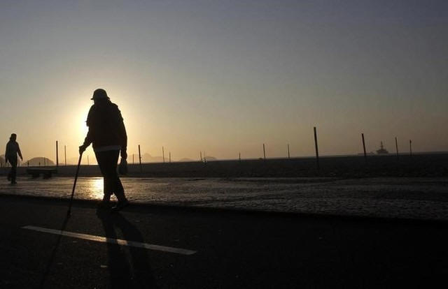 An elderly lady walks in Copacabana in Rio de Janeiro September 13,