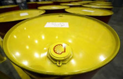 Filled oil drums are seen at Royal Dutch Shell Plc's lubricants