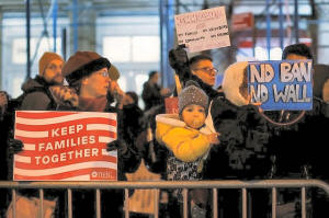 People protest against President Donald Trump's travel ban in New