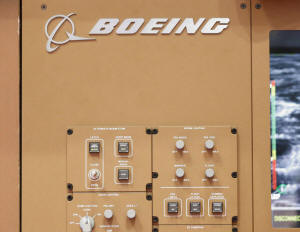 Boeing's logo is seen on its KC-46 Aerial refuelling operator's