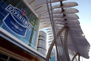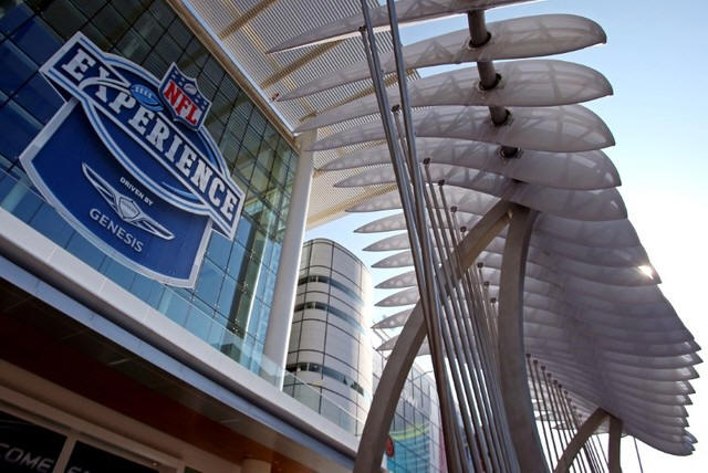A view of the NFL Experience logo on the George R. Brown Convention