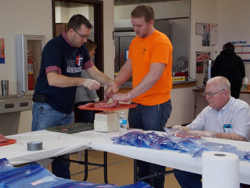 This Saturday, Zion Lutheran School will host its annual Pancake and Sausage Day at the school on Woodlawn Road in Lincoln. As is the tradition, this week volunteers came together at the school to make the sausage. Sausages will be cooked and served at the meal, and freshly ground pork will also be sold in bulk during the event. The annual meal day includes many other fun activities and is not only a big fundraiser for the school but also a big event in the community. Hundreds will attend and will spend time not only enjoying the great food but great company as they attend with family and meet up with friends and neighbors also there to support the school and enjoy a great meal.