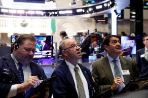 Traders work on the floor of the New York Stock Exchange (NYSE)