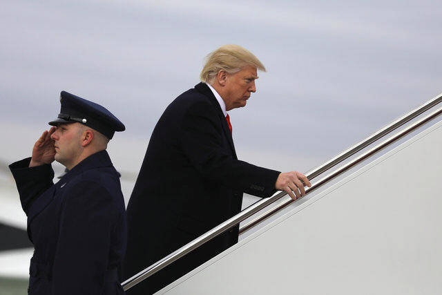 President Donald Trump boards Air Force One for travel to Palm