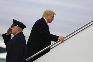 President Donald Trump boards Air Force One for travel to Palm