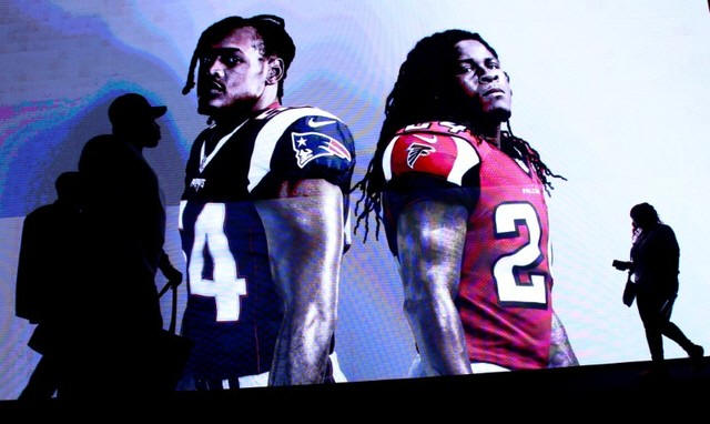 Patriots and Atlanta Falcons players inside the NFL Experience at