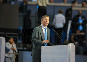 Colorado Governor John Hickenlooper speaks at the Democratic