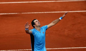 Argentina's Carlos Berlocq celebrates after he won his match against
