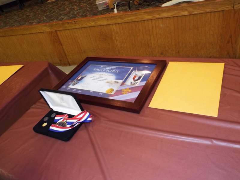 In talking about his Eagle project, he thanked his team, but also acknowledged that his dad had been a big help in the project also.