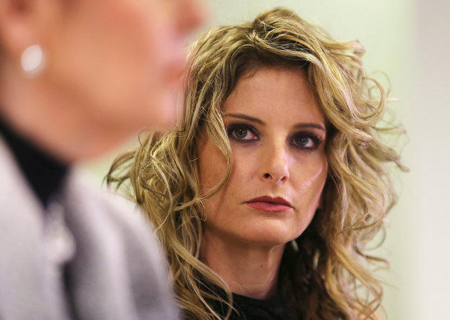 Summer Zervos listens as her attorney Gloria Allred speaks during a