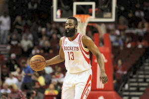 Rockets guard James Harden (13) handles the ball against the Orlando
