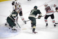 goalie Darcy Kuemper (35) during overtime at Xcel Energy Center.