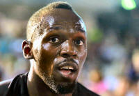 Jamaica's Olympic champion Usain Bolt reacts as he greets