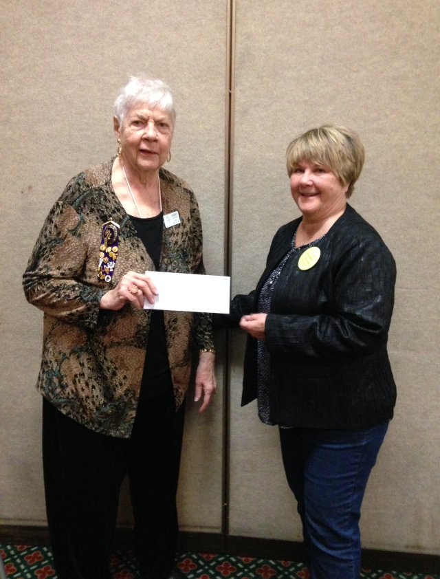The check was presented by Diane Farmer, the Auxiliary's Americanism