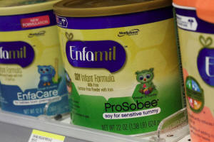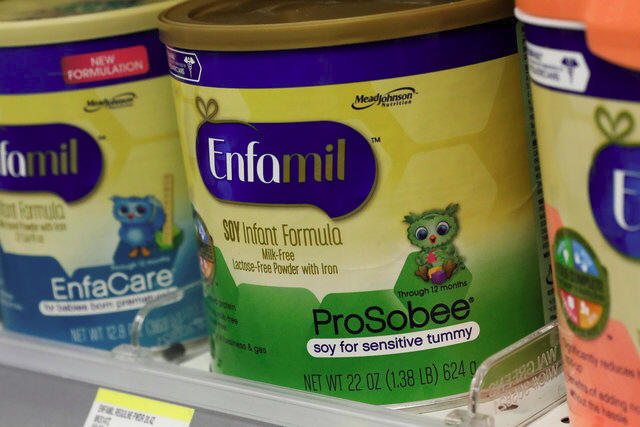 Mead Johnson's product Enfamil baby formula are displayed on a store