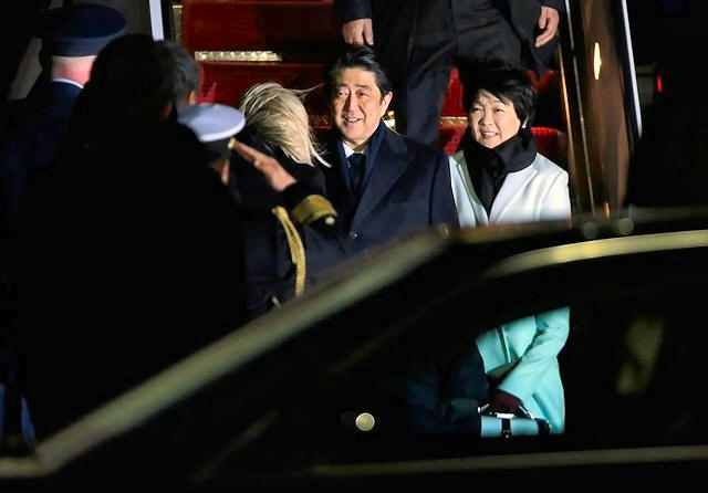 Japanese Prime Minister Shinzo Abe and his wife Akie Abe arrive