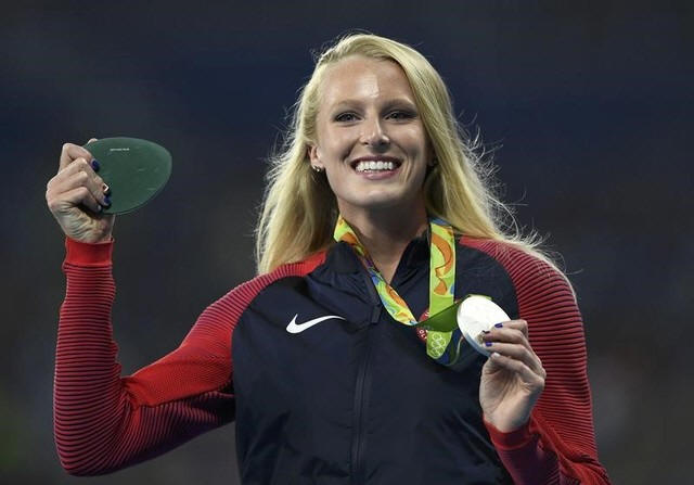 Sandi Morris (USA) of USA poses with her silver medal. REUTERS/Dylan