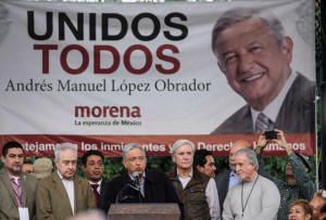 Mexican politician Andres Manuel Lopez Obrador, (C), leader of the