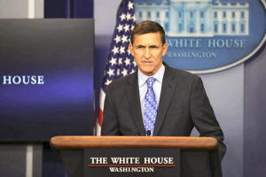 National security adviser General Michael Flynn delivers a statement