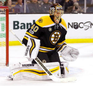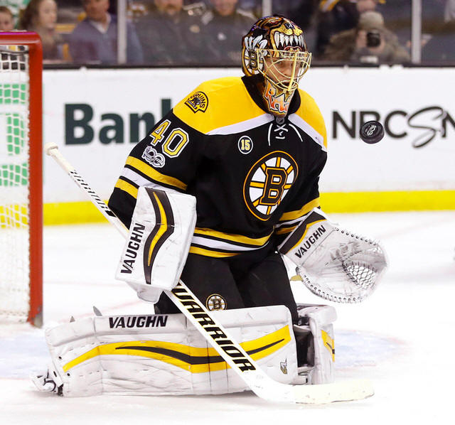 Bruins goalie Tuukka Rask (40) makes a save against the Montreal