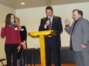 Peasley. Both were called forward and sworn into their positions on the