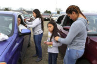 Violet Orozco (2nd R), 9, has her hair brushed by her sister