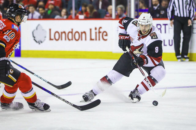 Coyotes right wing Tobias Rieder (8) controls the puck against