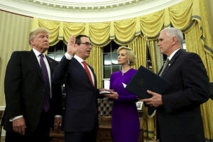 Trump swore in former Goldman Sachs banker and Hollywood financier