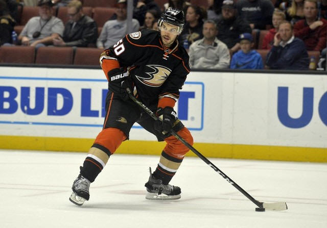 Anaheim Ducks center Antoine Vermette (50) controls the puck against