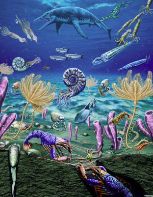 An artist's depiction of the diversified and complex Early Triassic