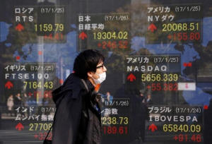 other countries' outside a brokerage in Tokyo, Japan, January 26,
