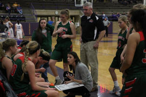 Richmond explains the game plan to the Lady Railers during a