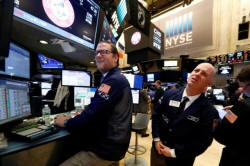 Traders work on the floor of the New York Stock Exchange (NYSE) in