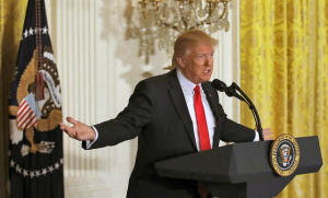 "The leaks are absolutely real. The news is fake," Trump told a news
