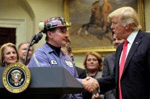 Michael Nelson, a coal miner worker shakes hands with U.S. President