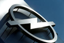 The logo of German car manufacturer Opel is pictured at the compnay