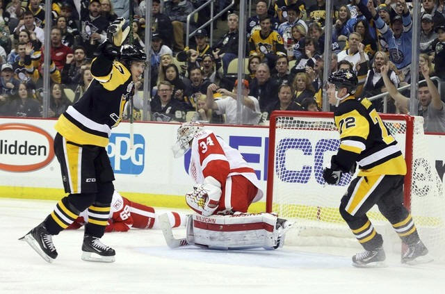 Detroit took advantage of a turnover by Jake Guentzel in the