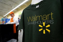 Souvenir t-shirts are seen for sale at the Wal-Mart Neighborhood Market in Bentonville, Arkansas, U.S. on June 4, 2015. REUTERS/Rick Wilking/File Photo |