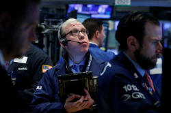 Traders work on the floor of the New York Stock Exchange (NYSE) in