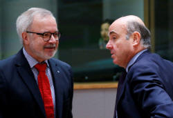 Economy Minister Luis de Guindos (R) attend European Union finance