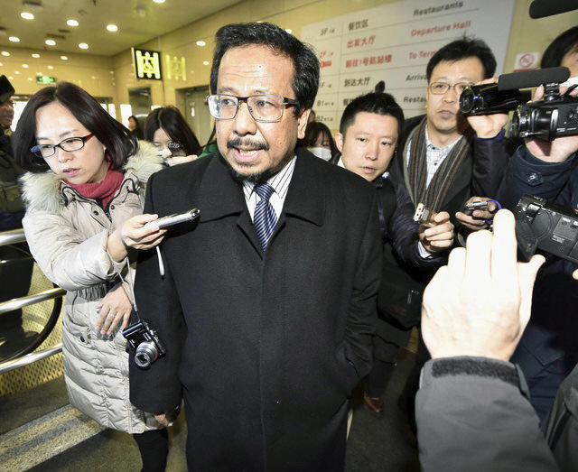 Malaysia's ambassador to North Korea Mohamad Nizan Mohamad (C) is